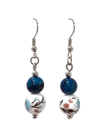 Blue Catseye Ceramic Bead Earrings