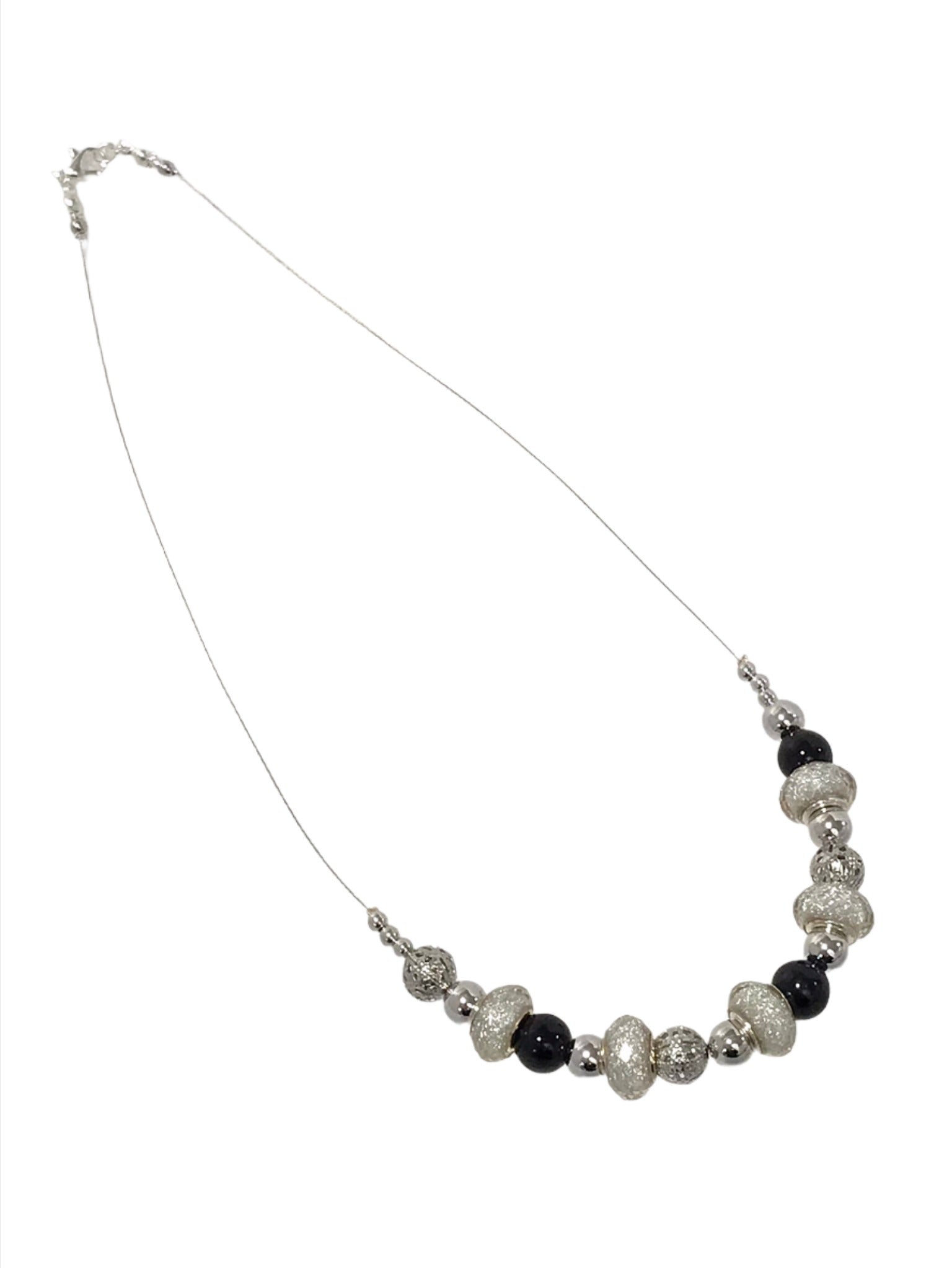 Dare to be bold with our Lampwork Silver and Black Bead Necklace! The combination of silver and black beads will make you stand out in style. Perfect for adding a touch of playfulness to any look.
